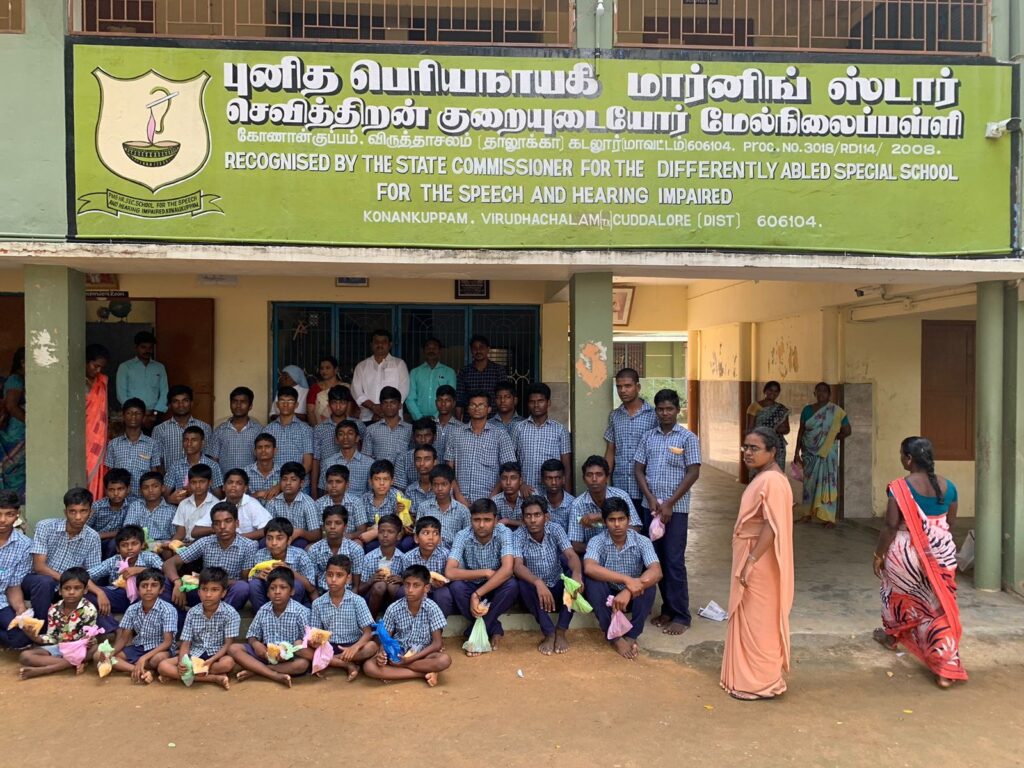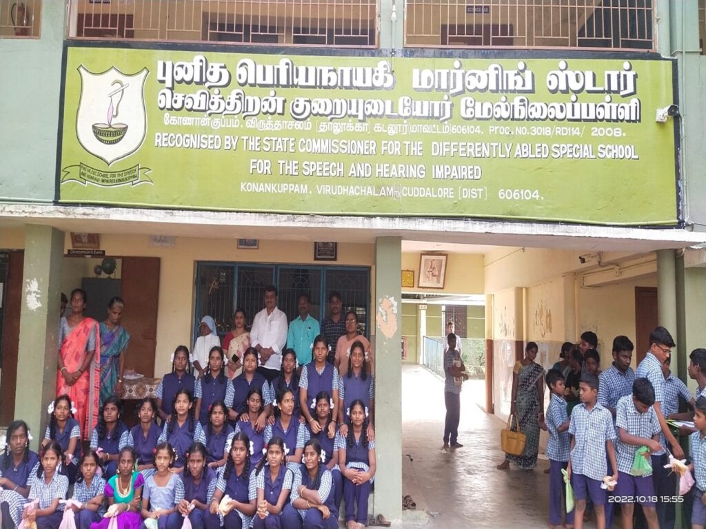 1. Konankuppam Sacred Periyanayagi School with Dumb and Deaf 125 students, 20 staffs and 5 attendees.
