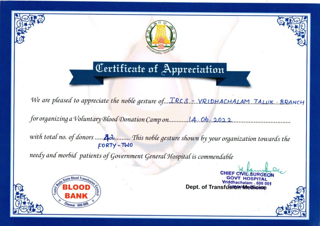 We had collected 42 units of blood and given it to Vridhachalam Govt Hospital.