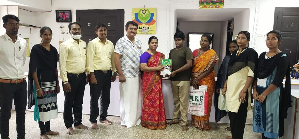 ஒருங்கிணைந்த சமுதாய பாதுகாப்பு மையம் (USACC) மற்றும் BSSMART கல்வி மையம் இணைந்தது “25.10.2022 அன்று 9ம் வகுப்பு படிக்கும் ஏழமையான மாணவனுக்கு, புத்தகங்கள் வழங்கப்பட்டது (English, Tamil, Social Science, Maths, Physics, Chemist, Botany, Zoology ). எங்கள் தலைமை நிர்வாக அதிகாரி திருமதி பானுமதி மணிகண்டராஜன் அவர்கள் வழங்கினார்.”